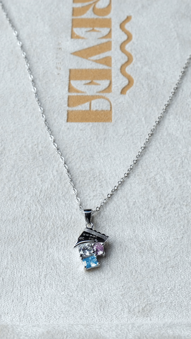 Varje detalj är polerad till perfektion, från den släta, matthetsbeständiga silverfinishen till de precisionsslipade AAA+ kubiska zirkoniastenarna som glittrar som riktiga diamanter. Resultatet är ett halsband som känns både lyxigt och roligt, ett smycke du inte hittar någon annanstans.